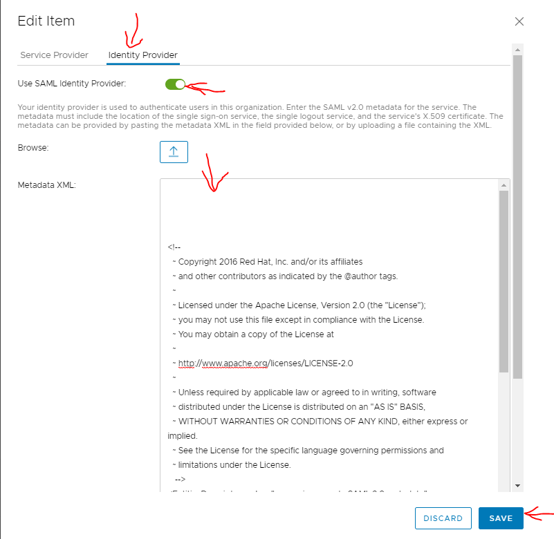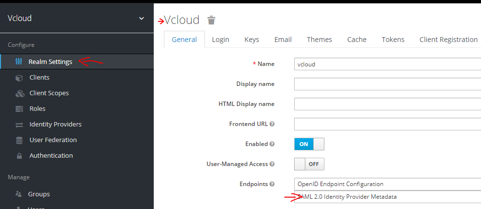 Finally it is time to test it in vcloud, copy SAML Identity Provider Metadata from Keycloak, we use it to finish setup form vCloud side: