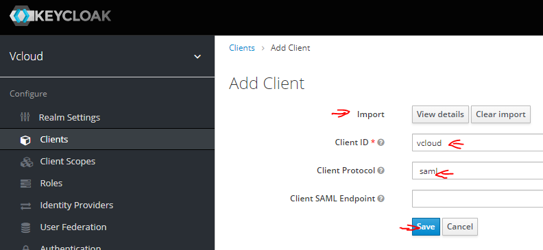 If we have .xml file from tenant portal, let’s back to Keycloak, and import it to Realm Client.